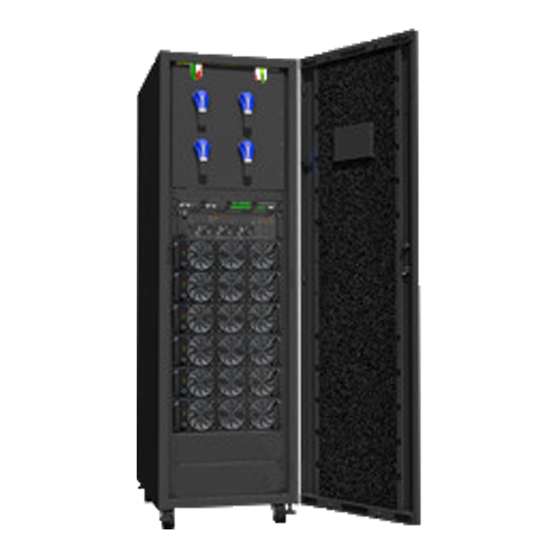 所有单元均采用模块化设计,包含功率模块、旁路模块、监控模块、配电模块(限单柜),功率模块为3U,旁路模块为3U,监控模块1U,配电模块11U,适配19英寸标准机柜